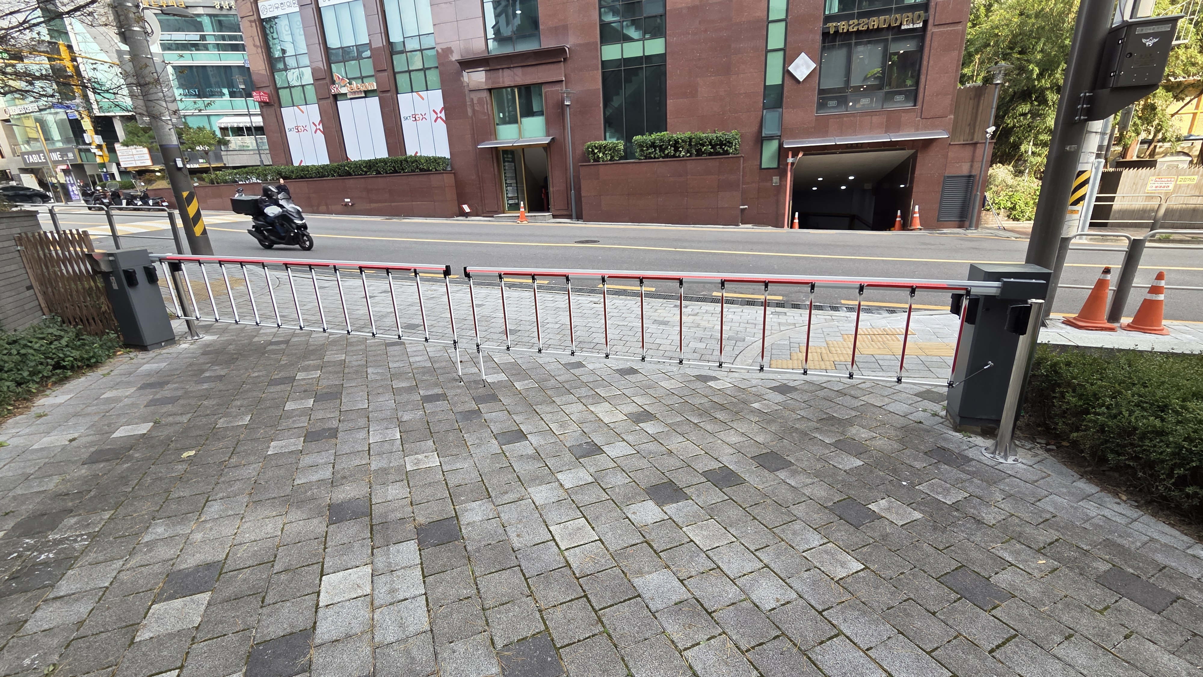 ¾ÆÆÄÆ® ¼Ò¹æµµ·Î°¡ ¿ÜºÎ º¸ÇàÀÚ µµ·Î¿Í ÀÎÁ¢ÇØ À־ܺÎÀÎ ¹× ¿ÀÅä¹ÙÀÌ µîÀÇ ÅëÁ¦µÇÁö ¾Ê´Â º¸¾È¹®Á¦¸¦ÇذáÇϱâ À§ÇÏ¿© ¼ÅÅÍÇü Â÷´Ü¹Ù¸¦ Á¿ì·Î ¹èÄ¡ÇÏ¿©¿ÏÀüÈ÷ Â÷´ÜÇÏ¿´½À´Ï´Ù